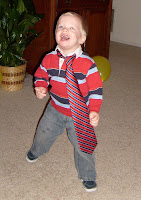 Wow, we can hardly believe that John is 2. We had a fun family party on Saturday the 20th. I decorated in Baby Einstein and John arrived to the Party (at the Ramsey’s) with everyone already there to yell “Happy Birthday.” He walked in adorned with a tie of Chris’s around his neck (John’s idea) What a cutie! He was so excited! Having Montica and Dawson in from Charleston made it especially fun! On his actual birthday we went for Chinese…he loves to dip eggrrolls. Is it possible that he is already 2? What a fun 2 years they have been.
