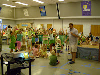 God Bless America is what the cake said that mom bought from Cosco to feed the five thousand. We only ate 1/20 of the cake. It has been packed up and put in the freezer for a 4th of July Party. John’s version of “God Bless America” doesn’t sound like it should. Come to think of it, it sounds an awful lot like “Happy Birthday.” Anyone who would like to come for cake on 7/4/08 you are all invited! In these first pictures John’s “Nellie” is trying to teach him to salute. He was more interested in putting his fingers into the cake than by his head.